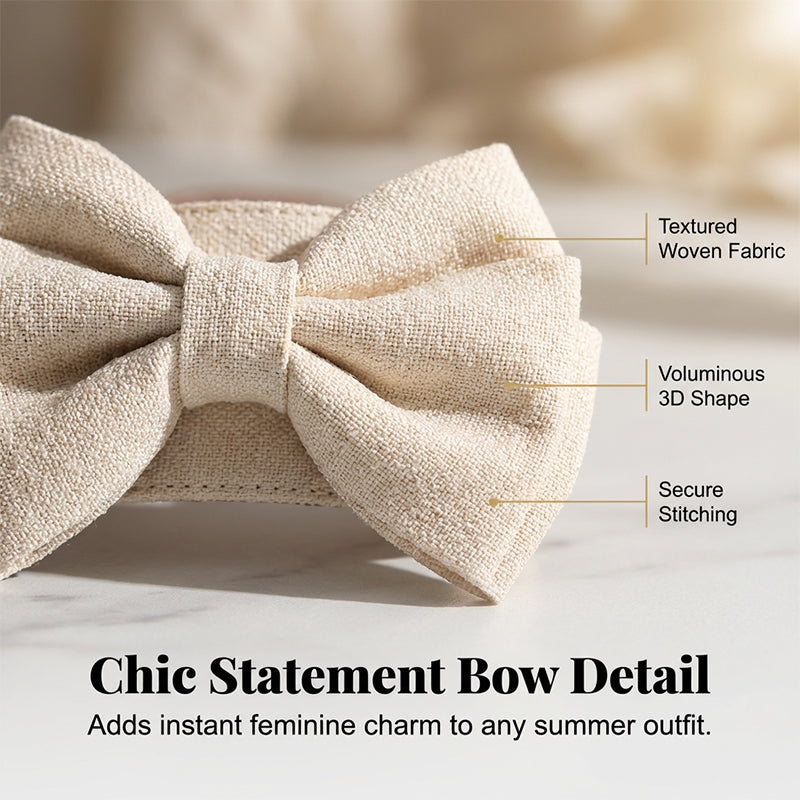 CHIC STATEMENT BOW DETAIL - Elevate your warm-weather wardrobe with this beautifully crafted, voluminous fabric bow. It creates a striking focal point, blending romantic aesthetics with modern sophistication for any occasion.